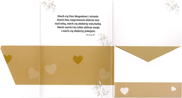 Ozdobne kopertki składają się z trzech części, które po złożeniu mają wielkość pocztówki (11cm x 15cm). Mieszczą się w nich nasze standardowe obrazki (9cm x 13,5cm).